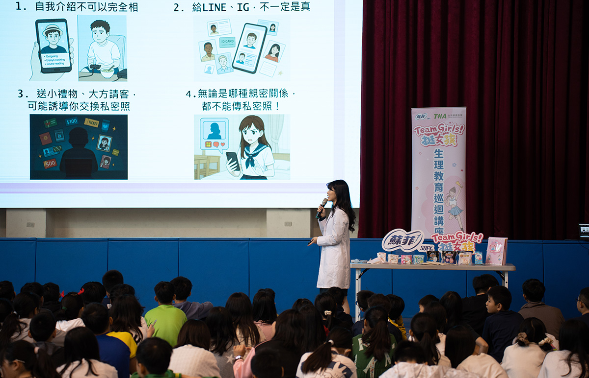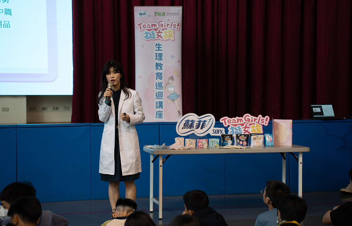 此次講座的講師禾馨宜蘊生殖中心主任張至婷醫師,也在現場直接展示各種生理用品的使用方式,透過具體示範與解說,幫助孩子建立對生理期護理的直觀理解。透過這場實作與對話,原本讓人困惑或感到壓力的身體變化,轉化為一份值得探索的成長印記。蘇菲 「Team Girls 挺女孩」生理教育計畫希望藉此在校園中建立正向的認知,讓月經成為可以安心交流的自然現象,不再是成長過程中說不出口的話題。